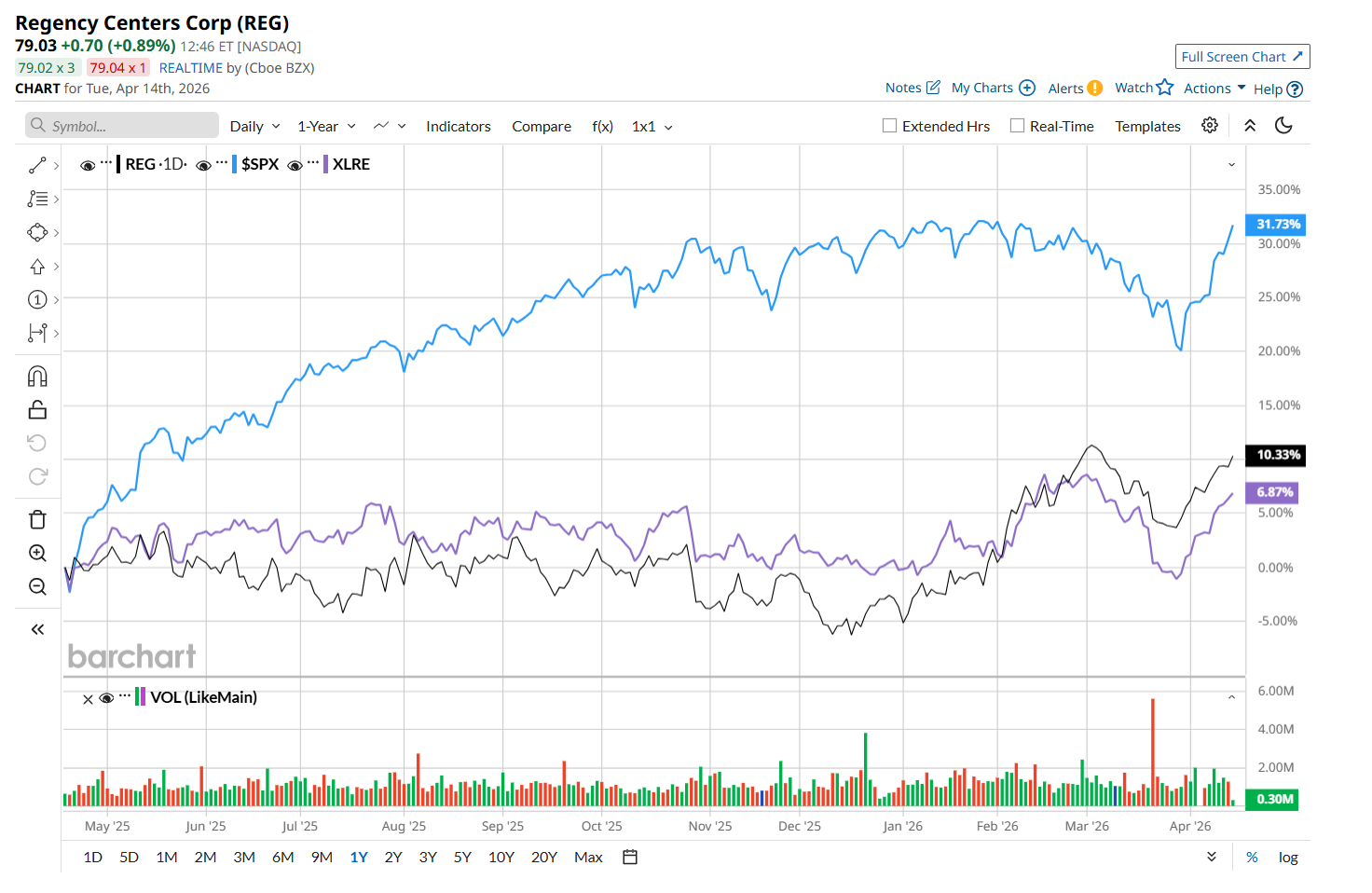 REG has gained 12.2% over the past 52 weeks, lagging the S&P 500 Index's ($SPX) 28.4% return over the same time frame. However, it has outpaced the State Street Real Estate Select Sector SPDR ETF’s (XLRE) 8.6% uptick over the same time period.