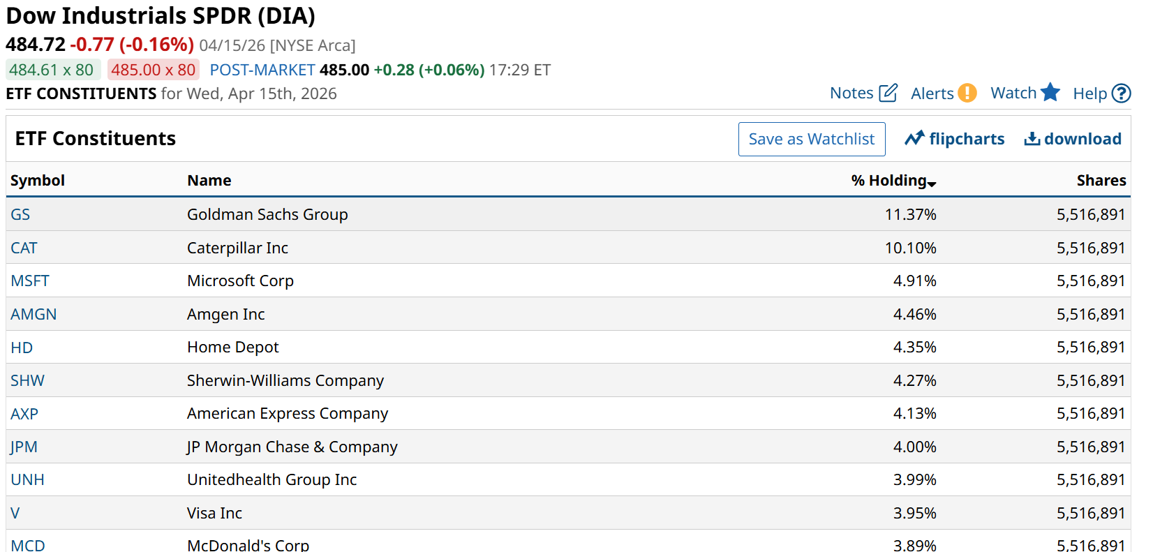 That was the case Wednesday, as Caterpillar (CAT) fell 3% and accounted for all of DIA’s decline and then some.