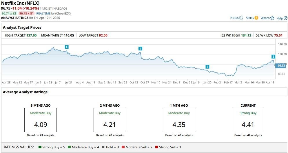 The consensus rating on Netflix also sits at a “Strong Buy” with the mean price target of roughly $116, indicating potential upside of nearly 20% from here.