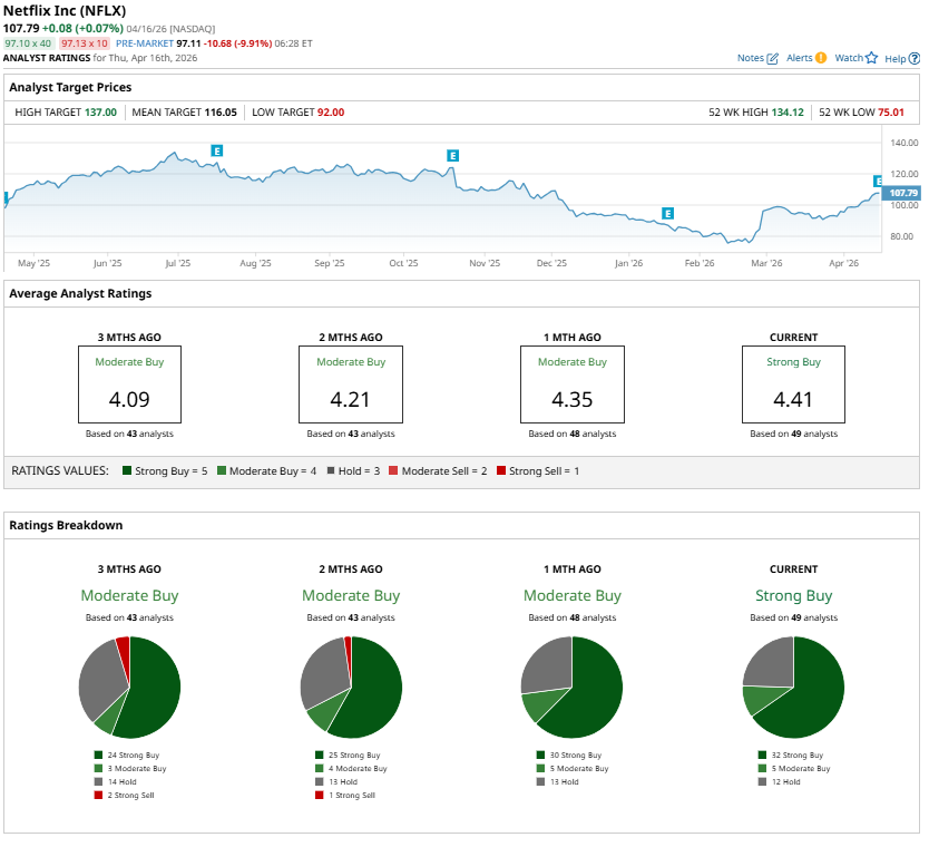 Analysts are bullish and maintain a “Strong Buy” consensus rating on NFLX stock.