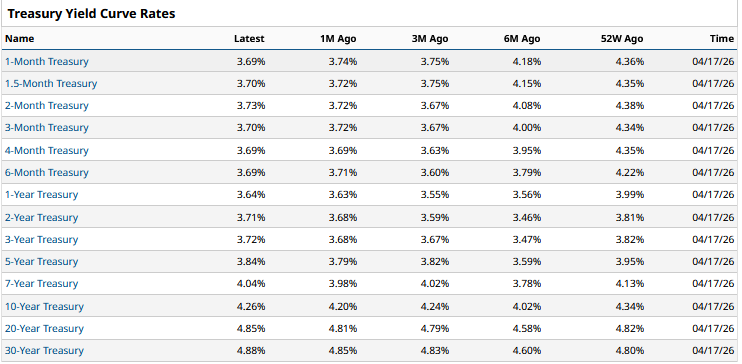 These are the interest rates the U.S. government is paying on its debt across different time periods. Rising yields on longer maturities signal that investors want more compensation for long-term fiscal uncertainty.
