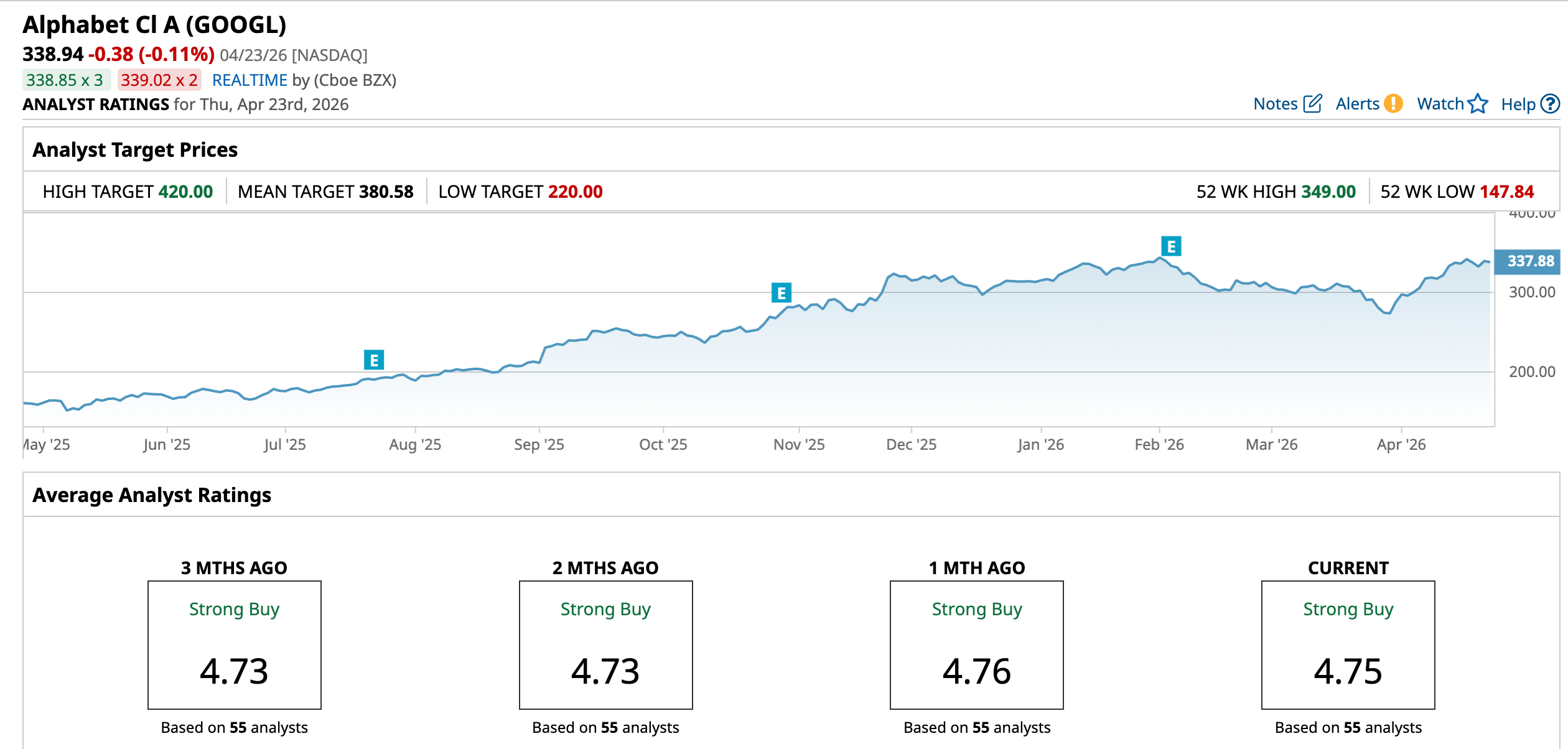 Wells Fargo’s Ken Gawrelski is leaning into that story. He raised his price target to $397 and kept an “Overweight” rating, pointing mainly to Google Cloud, where he expects a strong lift helped by a TPU licensing deal with Broadcom (AVGO) and the acquisition of Wiz.