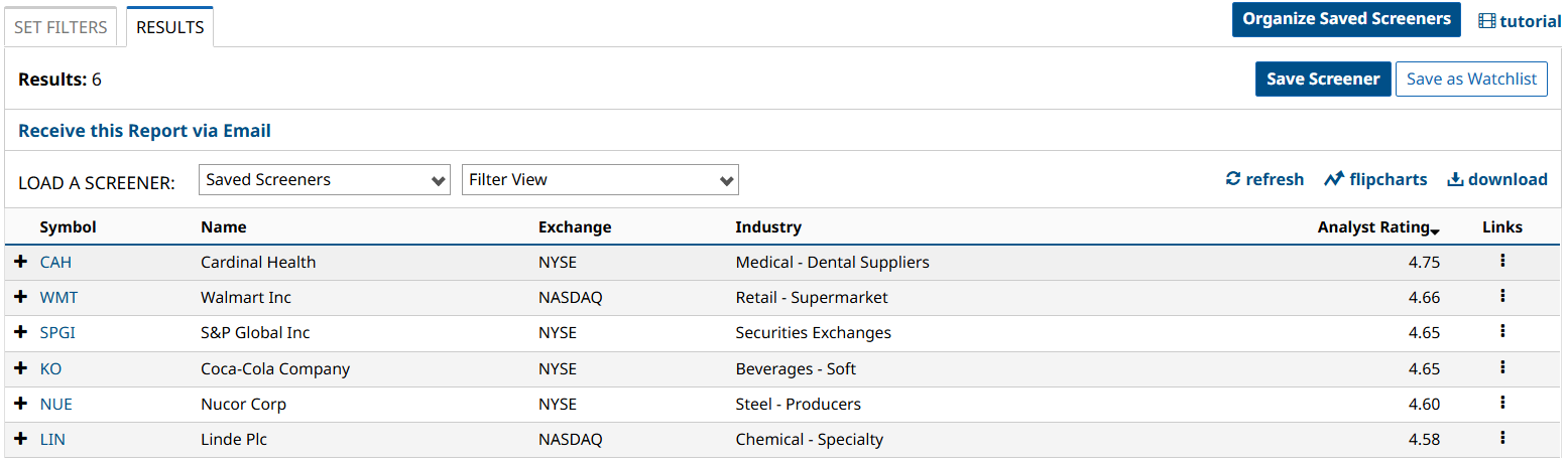 Current Analyst Rating: 4.5 - 5. Stocks that are “Strong Buy” are the best of the best according to Wall Street. Dividend Investing Idea: Dividend Aristocrats.
