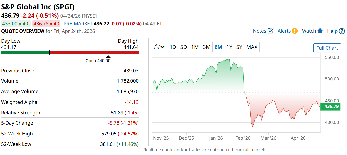 Like Walmart, S&P Global is a Dividend King that's raised its dividends for more than 50 consecutive years. Today, it pays $3.88 per share, yielding approximately 0.88%