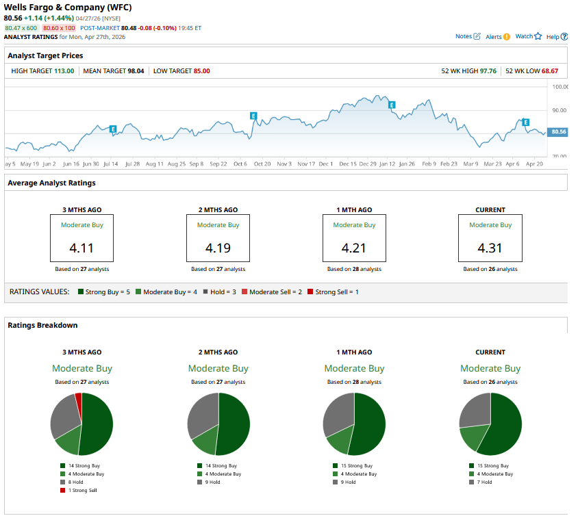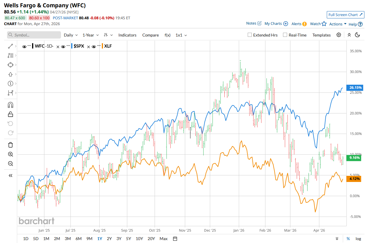 Shares of the company have lagged behind the broader market over the past year and in 2026. WFC stock has risen 15.5% over the past 52 weeks and has declined 13.6% on a YTD basis. In comparison, the S&P 500 Index ($SPX) has returned 29.8% over the past year and risen 4.8% in 2026.