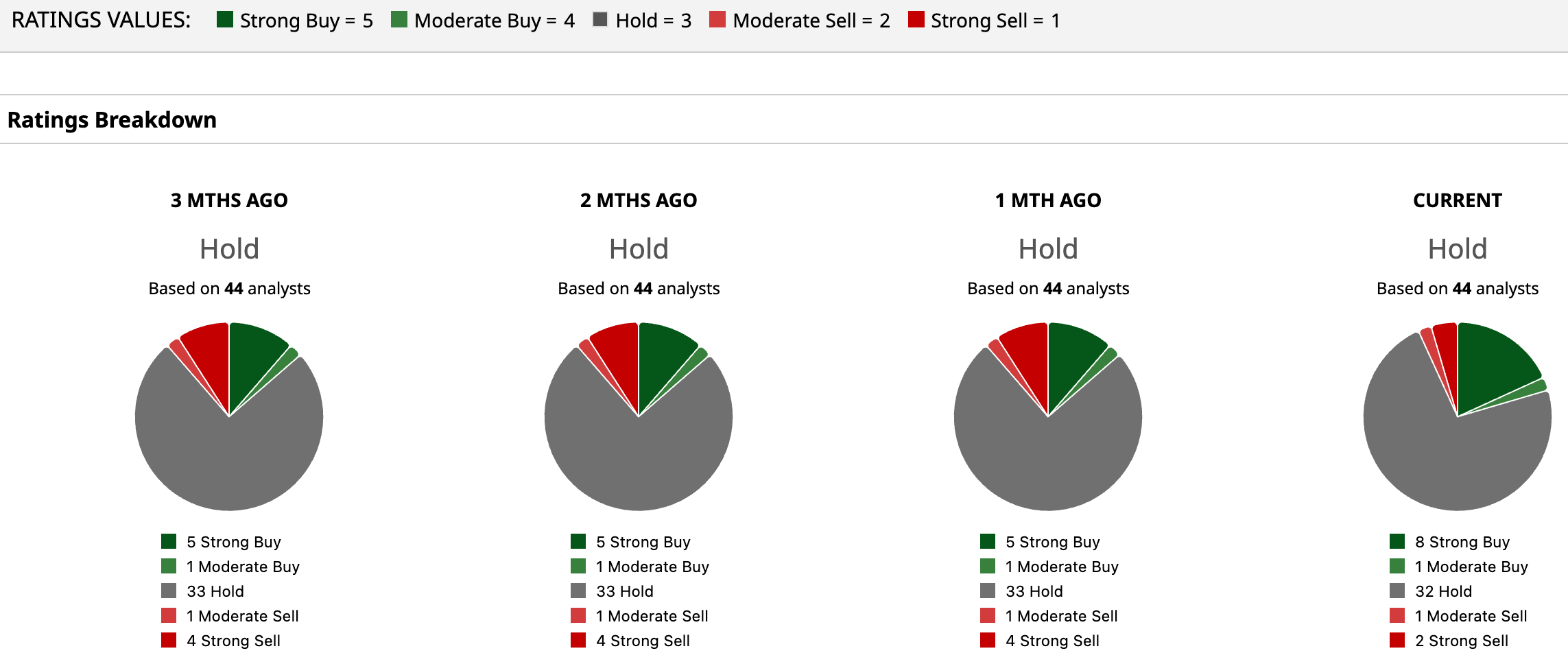 Overall, INTC has a consensus “Hold” rating. Of the 44 analysts covering the stock, eight advise a “Strong Buy,” one recommends a “Moderate Buy,” 32 analysts are on the sidelines, giving it a “Hold” rating, one suggests a “Moderate Sell,” and two propose a “Strong Sell.”