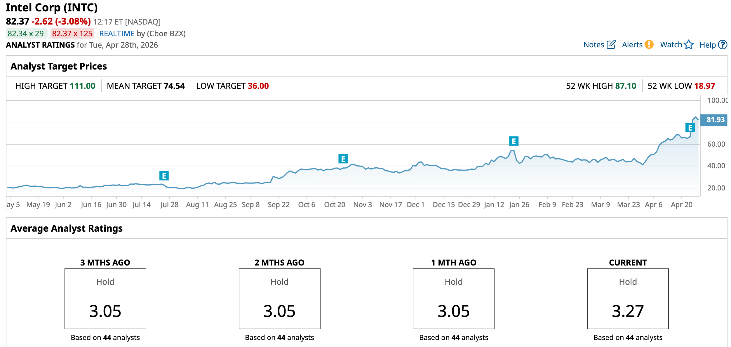 INTC has already surged past the average analyst price target of $74.54, while Evercore’s Street-high target price of $111 suggests that the stock could rally 34.8%.