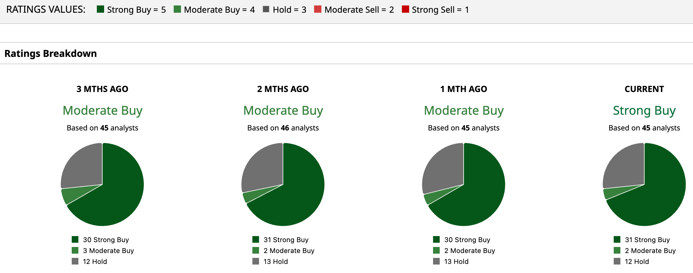 Chip giant AMD is an extremely popular name on Wall Street, with analysts awarding it a consensus “Strong Buy” rating overall. Of the 45 analysts rating the stock, a majority of 31 analysts have given it a “Strong Buy” rating, two analysts rated it “Moderate Buy,” while 12 analysts are taking the middle-of-the-road approach with a “Hold” rating. The consensus price target of $294.58 represents an 12.62% downside from current levels.